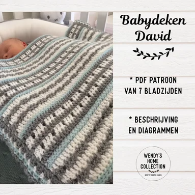 Deze babydeken ontwierp ik ter gelegenheid van de geboorte van mijn kleinzoon David op 25 mei 2019